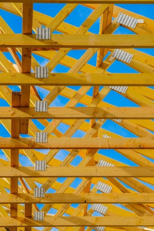 - Charpente industrielle ou à fermettes : Fabriquée en série avec des éléments en bois plus légers reliés par des connecteurs métalliques, cette charpente est couramment utilisée dans les constructions modernes. Elle offre une bonne isolation et une installation rapide.